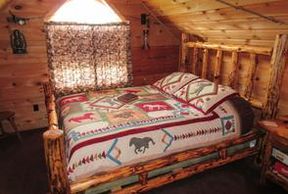 This is a large room featuring a king size bed, and a balcony. Private bathroom with whirlpool tub and shower. This room is located just off the loft.