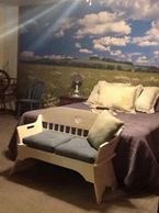 One of our newest rooms and is first floor friendly. Also includes a private bathroom containing; a six foot whirlpool and a shower. Also there is a balcony that provides an excellent view of the animals.